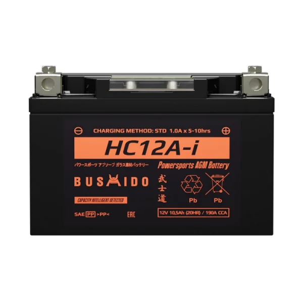 Представляем мото Аккумулятор BUSHIDO 12V 11,55Ah прямой HC12a-i, страна производитель которого: Южная Корея. Обладает ёмкостью 11.6 А/ч и пусковым током 11 А