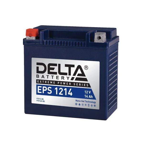 Представляем мото Аккумулятор DELTA EPS 1214 12V 14Ah GEL EN180, страна производитель которого: Китай. Обладает ёмкостью 14 А/ч и пусковым током 180 А