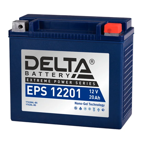 Представляем мото Аккумулятор DELTA EPS 12201 12V 20Ah GEL EN260, страна производитель которого: Китай. Обладает ёмкостью 20 А/ч и пусковым током 260 А