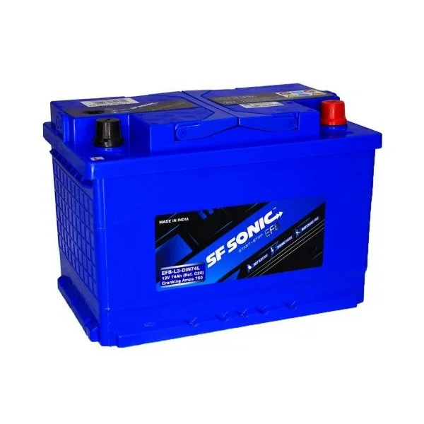 Представляем автомобильный Аккумулятор SF SONIC EFB 74Ah euro CC700, страна производитель которого: Индия. Этот аккумулятор обладает ёмкостью 74 А/ч и пусковым током 700 А, что обеспечивает надежный запуск автомобиля.