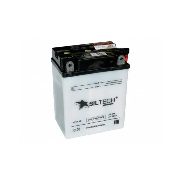 Представляем мото Аккумулятор SILTECH DС618 6N18-3B 6V18Ah о.п(сухо\заряж), страна производитель которого: Китай. Обладает ёмкостью 18 А/ч и пусковым током 18 А