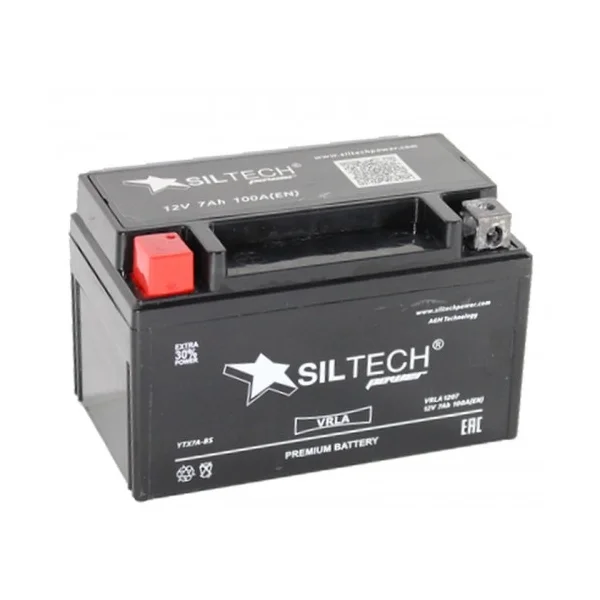 Представляем мото Аккумулятор SILTECH VRLA 1207 12V 7Ah YTX7A-BS AGM, страна производитель которого: Китай. Обладает ёмкостью 7 А/ч и пусковым током 110 А