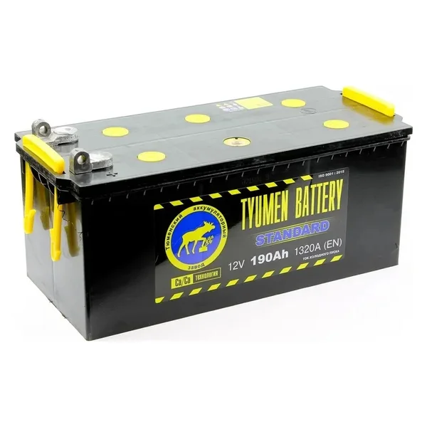 Представляем автомобильный Аккумулятор ТЮМЕНСКИЕ АККУМУЛЯТОРЫ Стандарт 190Ah болт EN1320, страна производитель которого: Россия. Этот аккумулятор обладает ёмкостью 190 А/ч и пусковым током 1320 А, что обеспечивает надежный запуск автомобиля.