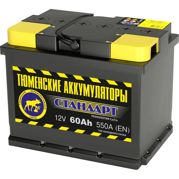 Представляем автомобильный Аккумулятор ТЮМЕНСКИЕ АККУМУЛЯТОРЫ Стандарт 60Ah прямой EN550, страна производитель которого: Россия. Этот аккумулятор обладает ёмкостью 60 А/ч и пусковым током 550 А, что обеспечивает надежный запуск автомобиля.