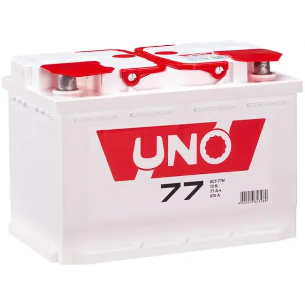 Представляем автомобильный Аккумулятор UNO 77Ah euro CCA670, страна производитель которого: Россия. Этот аккумулятор обладает ёмкостью 77 А/ч и пусковым током 670 А, что обеспечивает надежный запуск автомобиля.