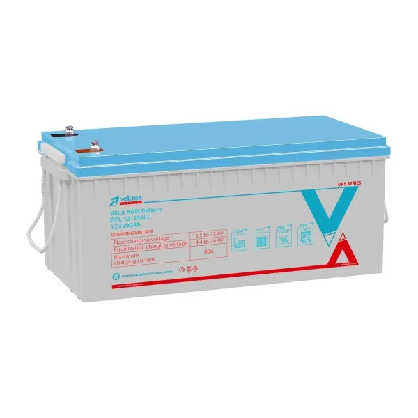 Представляем ИБП Аккумулятор VEKTOR GPL 12-200 12V200Ah AGM, страна производитель которого: Вьетнам. Обладает ёмкостью 200 А/ч и пусковым током 200 А