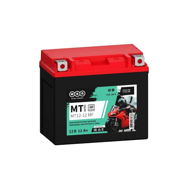 Представляем мото Аккумулятор WBR MT 12V 12Ah euro YTX14-BS, YTX12 AGM 180A CCA, страна производитель которого: Китай. Обладает ёмкостью 12 А/ч и пусковым током 180 А